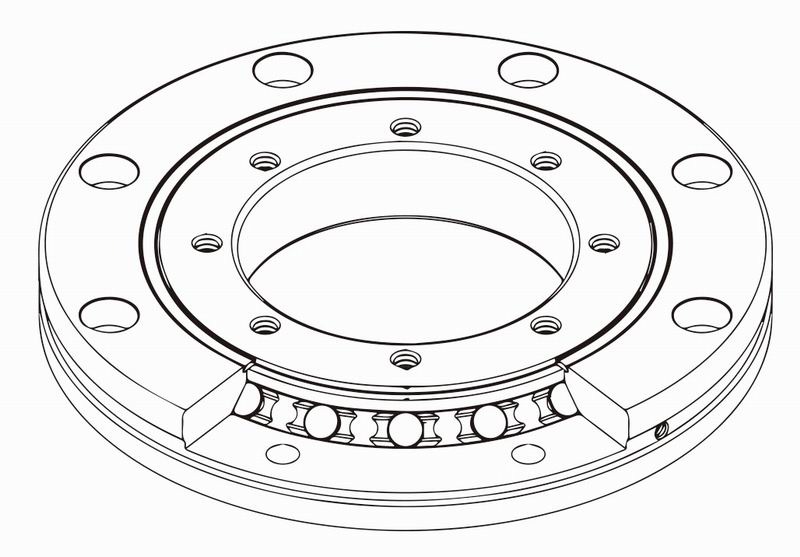 由于外圈和內(nèi)圈都有安裝孔,安裝時不需要固定法蘭和支撐座。另外,由于外圈和內(nèi)圈均為整體結(jié)構,安裝對性能幾乎沒有影響,因此能夠獲得穩(wěn)定的旋轉(zhuǎn)精度和扭矩。適用于外圈和內(nèi)圈旋轉(zhuǎn)的場合。